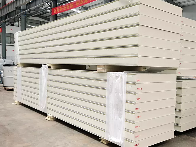 ସ୍ଥାୟୀତ୍ୱ ଏବଂ ଶକ୍ତି: PU ସ୍ୟାଣ୍ଡୱିଚ୍ ପ୍ୟାନେଲଗୁଡିକର ଧାତୁ ବାହ୍ୟ ସ୍ତରଗୁଡ଼ିକ ସ୍ଥାୟୀତ୍ୱ ଏବଂ ଗଠନମୂଳକ ଶକ୍ତି ପ୍ରଦାନ କରେ | ପ୍ରତିକୂଳ ପାଗ ପରିସ୍ଥିତିକୁ ପ୍ରତିହତ କରିବା ପାଇଁ ସେଗୁଡିକ ପରିକଳ୍ପନା କରାଯାଇଛି, ଯେପରିକି ପ୍ରବଳ ପବନ, ବର୍ଷା, ତୁଷାର, ଘରର ସ୍ଥିରତା ଏବଂ ଦୀର୍ଘାୟୁ ନିଶ୍ଚିତ କରିବା |